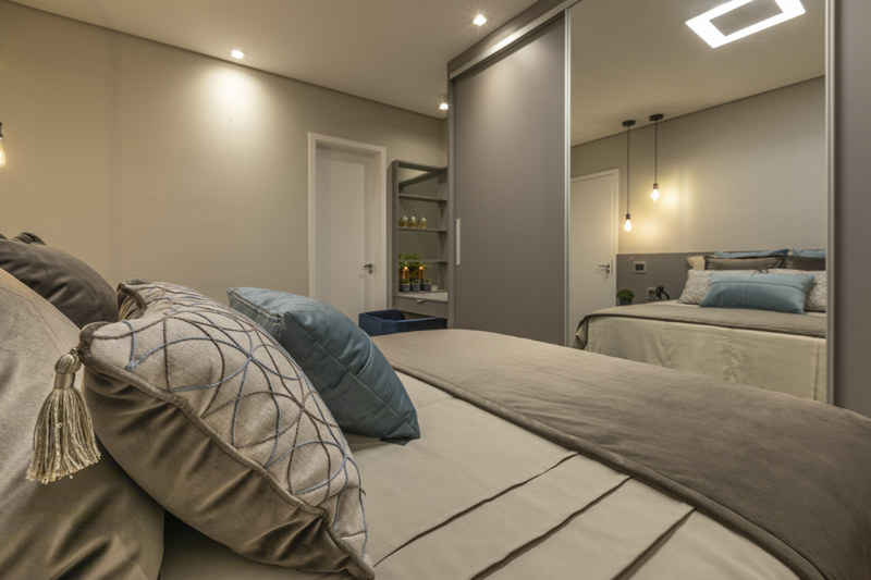 O armário com porta de correr permite uma locomoção adequada neste ambiente e seu espelho traz a solução para o dia a dia e amplitude.